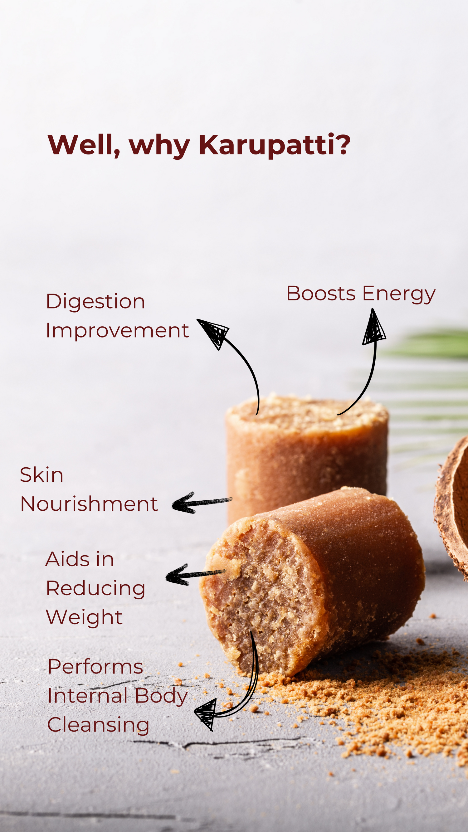 We use organic palm jaggery a.k.a Karupatti, which has a low Glycemic Index, to satisfy your taste buds and not spike your sugar level. Native to coastal areas of South India, this natural sweetener is rich in minerals and has a unique nutty flavour that complements our natural nut butters.